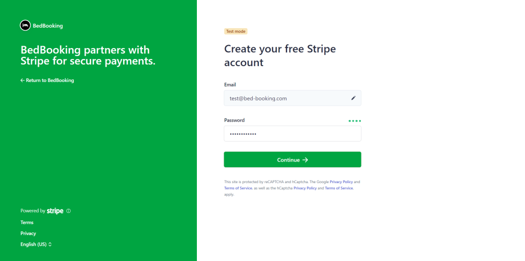 Loggen Sie sich einfach in Ihr BedBooking-Konto ein, gehen Sie zu den Zahlungseinstellungen und wählen Sie dann die Option Stripe. Der Schritt-für-Schritt-Assistent wird Sie durch den Prozess führen.