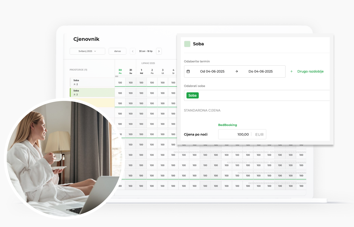 Aplikacija kalendara, tzv. mobilni kalendar, nedvojbeno je najbolji prijatelj suvremenog iznajmljivača. Ne samo da na jednostavan i brz način može upravljati svim svojim nekretninama ili sobama koje iznajmljuje, nego se može i komunicirati s gostima. Online sustav rezervacija BedBooking mnogo je više od aplikacije kalendara – to je alat za učinkovito vođenje kratkoročnog najma, koji će olakšati mnoge zadatke iznajmljivača i unaprijediti poslovanje. U ovoj aplikaciji kontrolirat ćete sve uplate, pobrinuti se za pripremu nekretnine na vrijeme za dolazak novih gostiju, a također ćete im ponuditi glatku komunikaciju zahvaljujući personaliziranim predlošcima poruka s dinamičkim oznakama, poput imena gosta, datuma prijave ili cijene boravka. Aplikacija je dostupna na čak 24 jezika, pa svoju djelatnost možete promovirati diljem svijeta, bez ograničenja.