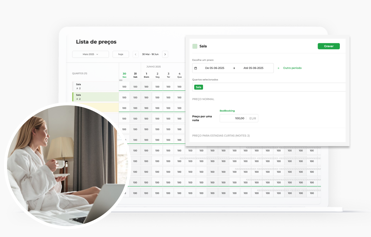 Uma aplicação de calendário, ou seja, um calendário móvel, é sem dúvida o melhor aliado do senhorio moderno. Não só permite gerir de forma rápida e simples todos os imóveis ou quartos que arrenda, como também comunicar com os hóspedes. O sistema de reservas online da BedBooking é muito mais do que um calendário – é uma ferramenta para gerir eficazmente o arrendamento de curta duração, que facilita muitas tarefas e otimiza o negócio. Nesta aplicação pode controlar todos os pagamentos, preparar o imóvel a tempo para a chegada de novos hóspedes e oferecer uma comunicação fluida graças a modelos de mensagens personalizados com etiquetas dinâmicas, como o nome do hóspede, a data de check-in ou o preço da estadia. A aplicação está disponível em 24 idiomas, pelo que pode promover a sua atividade em todo o mundo, sem limitações.